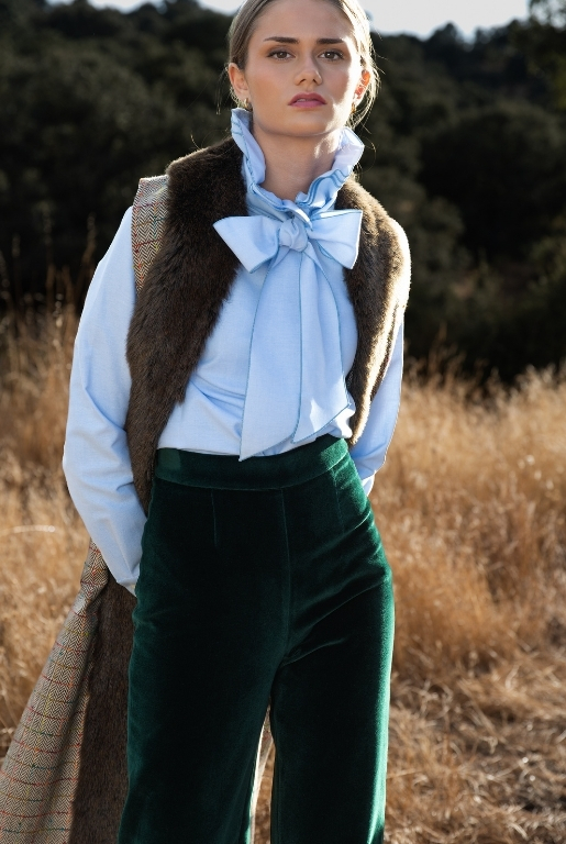 Chaleco suelto de mujer en paño con cuadros multicolor, con pelo sintético de gran calidad. Te invitamos a probarlo en tus ocasiones más especiales.