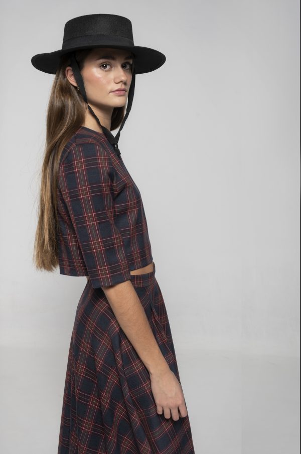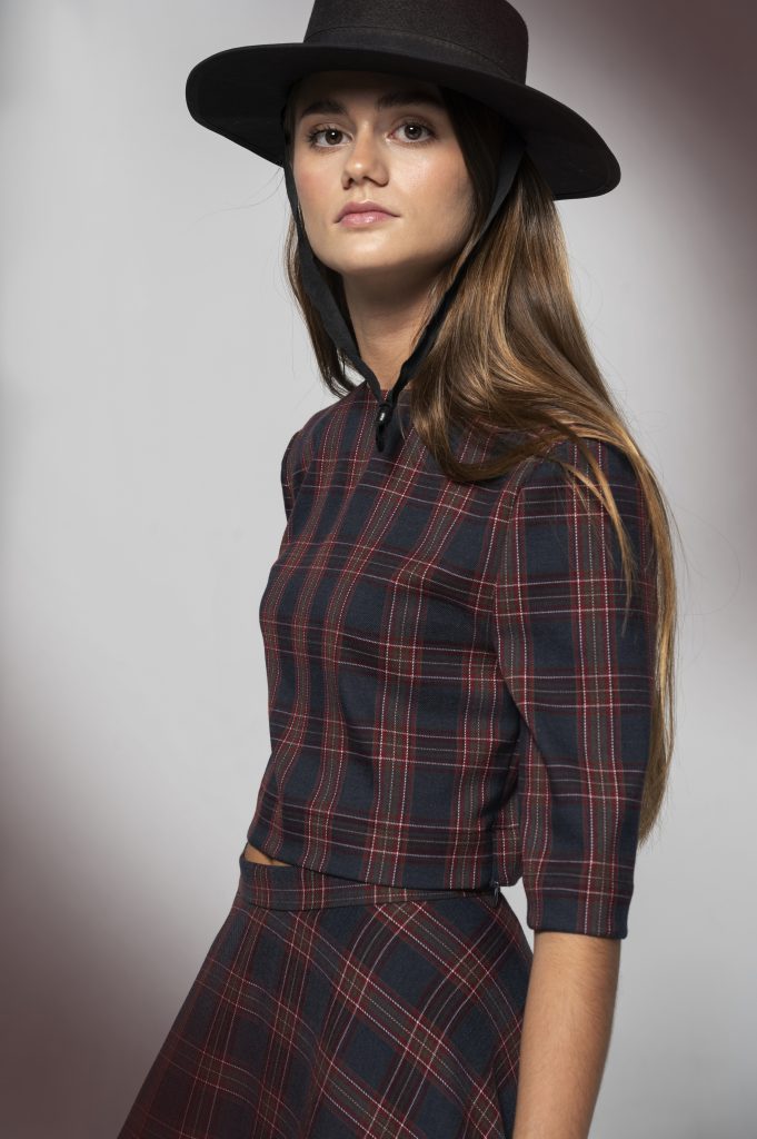 Top de cuadros de mujer, con manga francesa. Te invitamos a probarlo en tus ocasiones más especiales.
