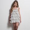 Bañador de rayas con vivos en rosa y mostaza con botón a la espalda. Fabricado en España.