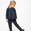 Blusa de niña, con volantes en el cuello y en las mangas. Abertura completa en la espalda, con botones nacarados. Talla poco, recomendamos adquirir una talla mayor.