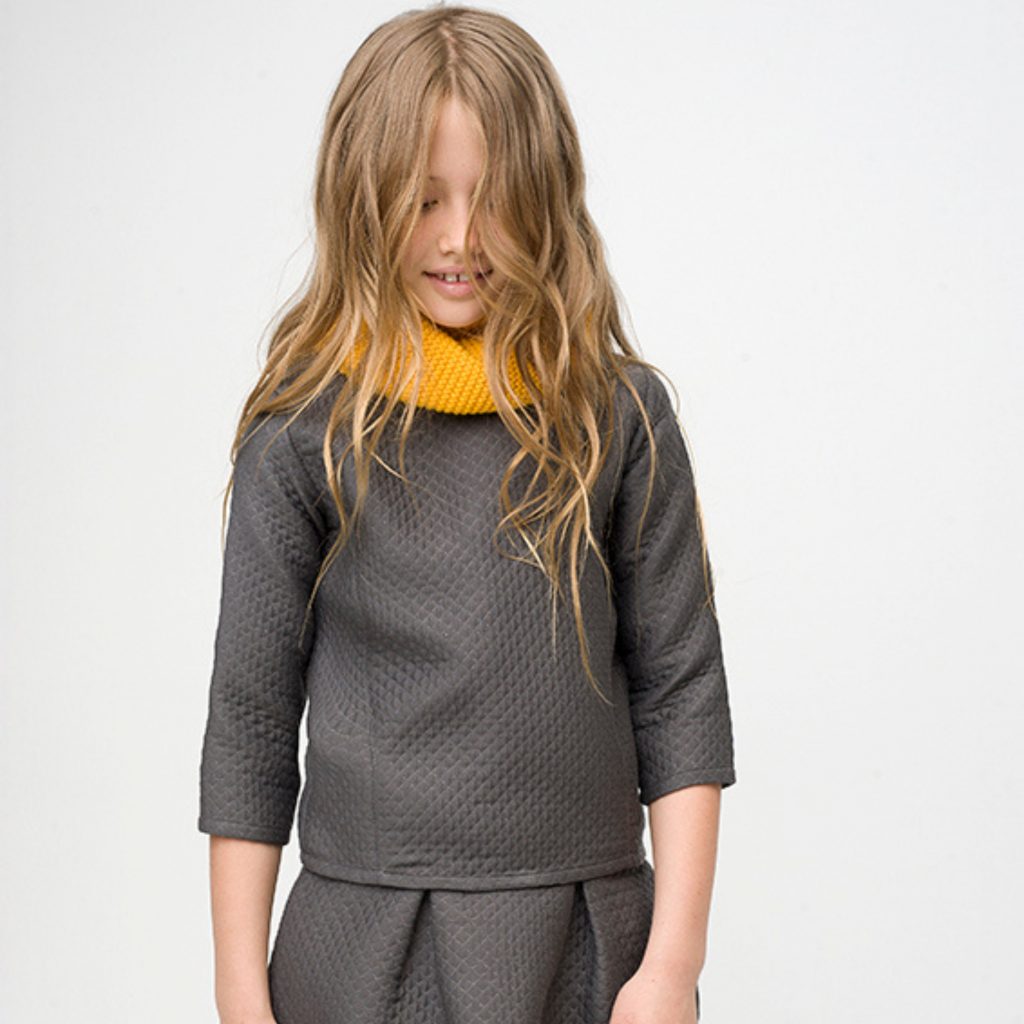 Top de niña en tela acolchada con cuello redondo. Cremallera en la espalda.