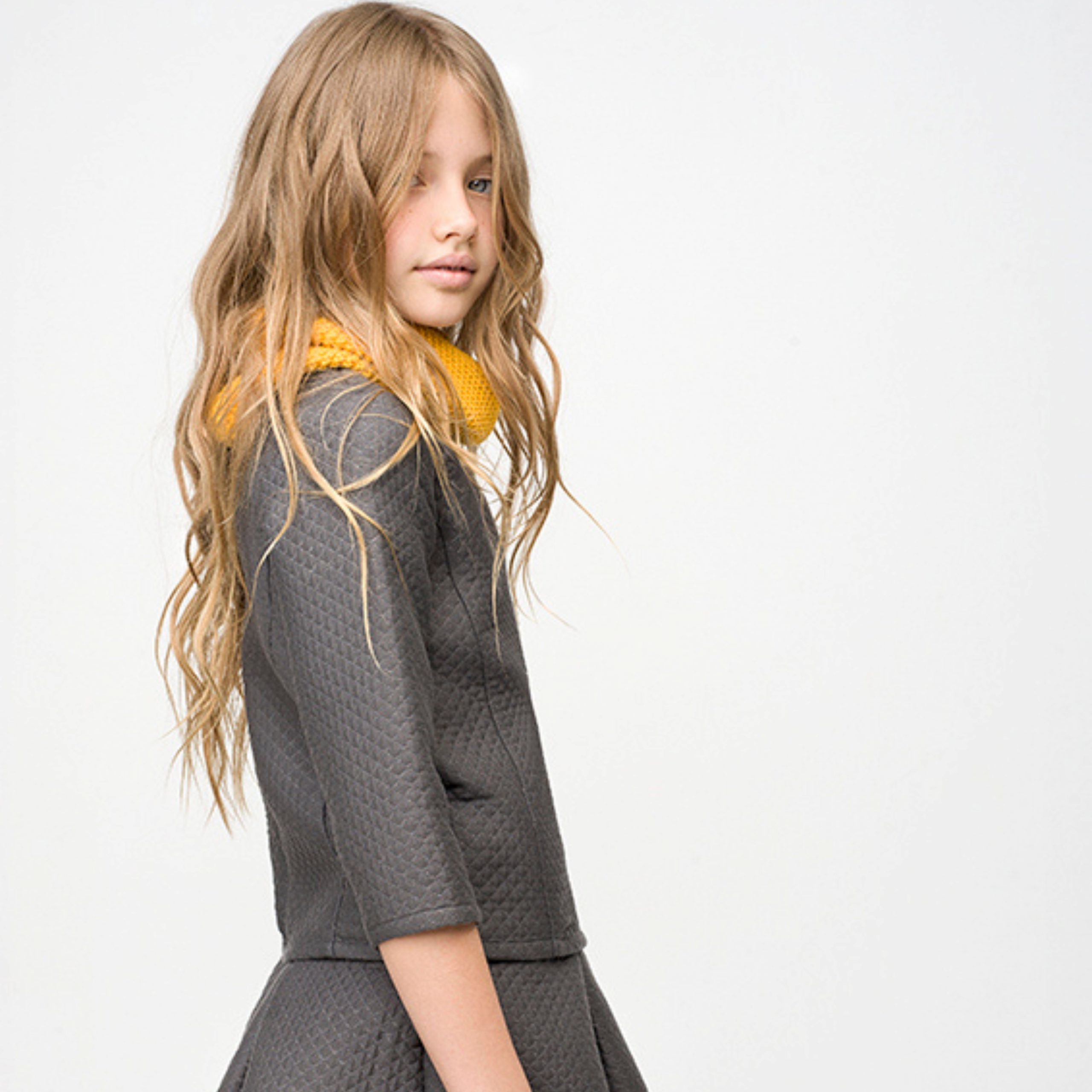 Top de niña en tela acolchada con cuello redondo. Cremallera en la espalda.