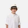Chaleco de lino blanco con botones en contraste de madera. Con hebilla en la espalda. Forrado.