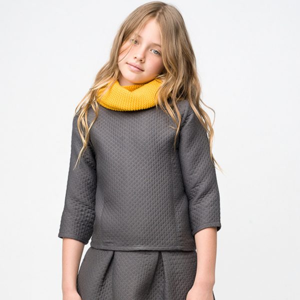 Falda acolchada en color gris con cinturilla y cremallera lateral Fabricada en España