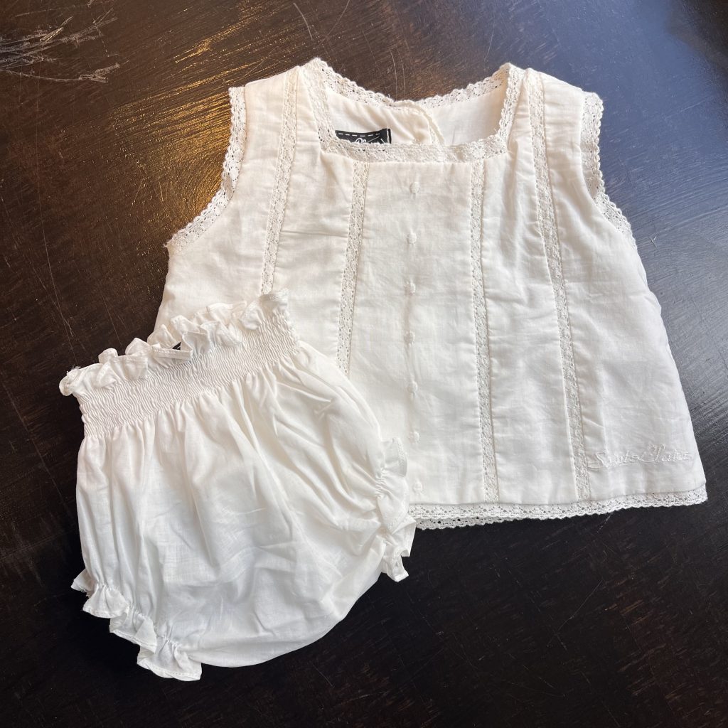 Conjunto para recién nacido de cuerpo bordado y braguita.