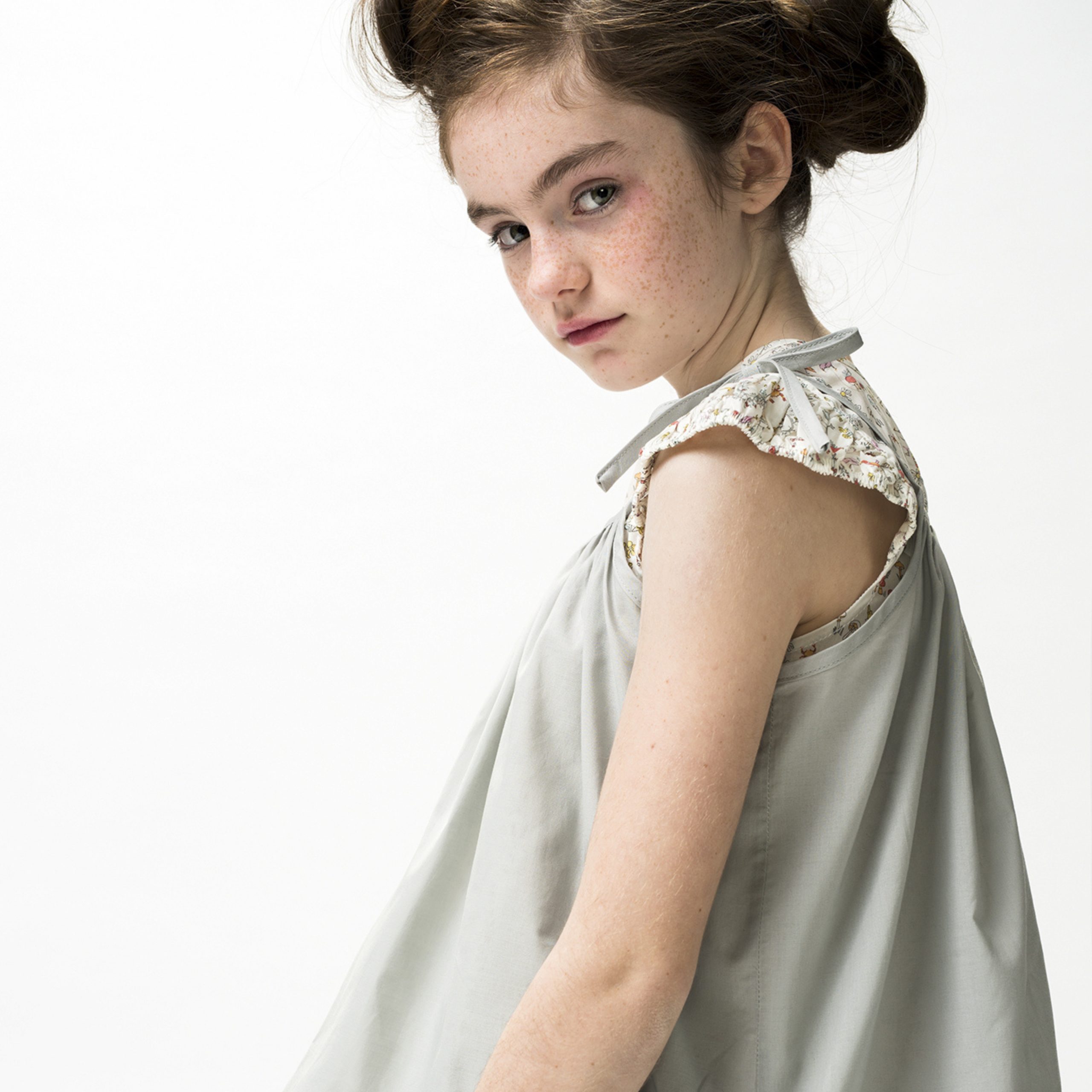 Top azul con mucho vuelo, con lazadas a modo de tirantes.