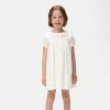 Vestido con cuello tipo peter pan de algodón voile. Con manga corta y botones en la espalda. Va forrado.